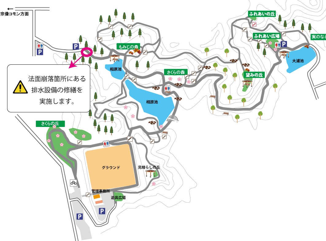 Home 新着情報 【重要】散策路排水設備復旧工事を実施します(令和8年1月7日~1月15日(予定)) 【重要】散策路排水設備復旧工事を実施します(令和8年1月7日~1月15日(予定)) 2026.01.5 新着情報 平素よりふれあいの森総合公園をご利用いただきまして誠にありがとうございます。 ふれあいの森・散策路内にて、排水設備の修繕工事を実施いたします。 重機が通りますので通行には十分注意してください。 【工事期間】 令和8年1月7日~1月15日(予定) ※天候により日程が変更となる可能性がございます。 ご利用の皆様にはご迷惑をおかけし大変申し訳ございませんが、 ご理解・ご協力をお願いいたします。 Tweet Share +1 Hatena Pocket feedly Pin it